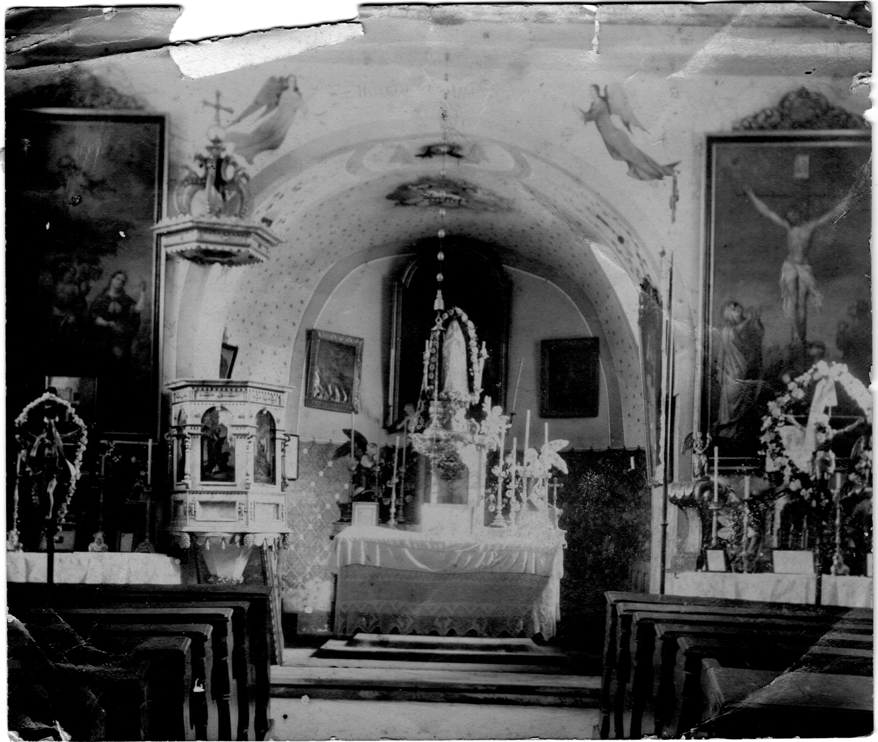 Kostel tento, „narození Panny Marie“, jest 20 metrů dlouhý a 7 metrů široký. Jest prastarý, zajisté tak starý jako hrad, ne-li starší. Stavěn z téhož materiálu jako hrad, což ale významu nemá, jelikož káman celého okolí jest téhož druhu. Patřil původně pod děkanát šumperský, jako i fary okolní. Roku 1350 postoupen celý tanto děkanát k biskupství litomyšlskému, obratem opět se vrátil k Olomouci. Když r. 1480 biskupství ono zaniklo.