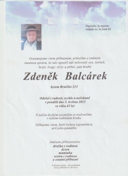 5. května 2025 Zdeněk Balcárek, Brníčko 213, 44 let